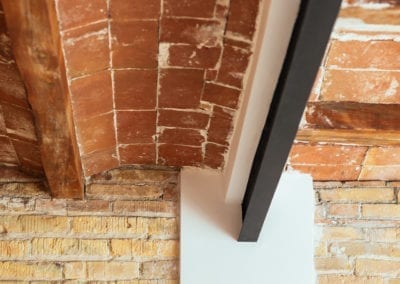 També s’han rescatat les parets d’obra vista d’origen de l’habitatge en les zones dels banys i passadís, en el qual, a més hem potenciat integrant il·luminació Led perimetral per a ressaltar la seva bellesa i il·luminar les