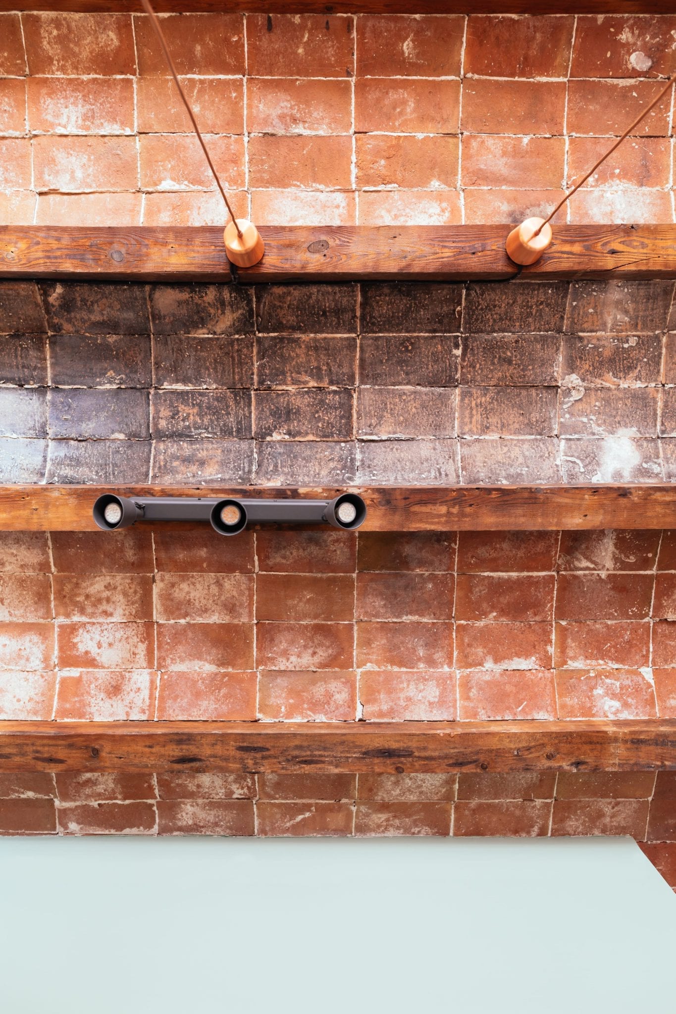 Aquest projecte, destaca per la recuperació dels meravellosos sostres de volta catalana, amb rajoles d’un color terracota vermellosa molt intensa i bigues de fusta natural al qual hem afegit focus Industrials. A més es va fer un reforç