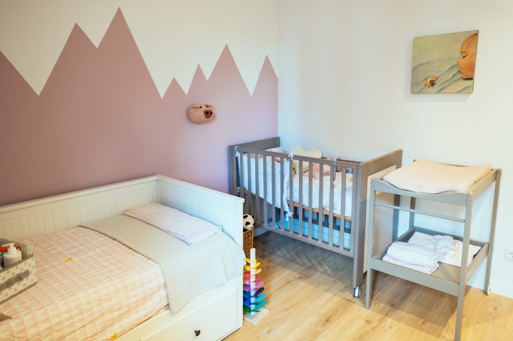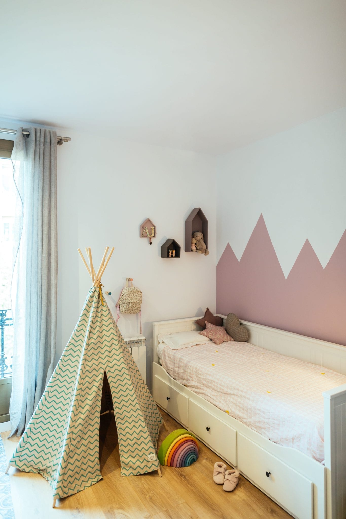 D’altra banda, les habitacions infantils, s’han concebut des d’una visió molt neta, amb contrastos de color en tonalitats pastel amb dibuixos personalitzats en les parets i detalls decoratius suaus.